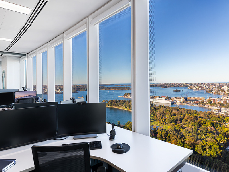 Aurora Place is a landmark 42 storey office building constructed in 2000. The building boasts state of the art services winter garden design. Aurora Place is situated on the northeastern corner of Phillip and Bent Streets adjacent to Botanical Gardens and just a short walk to Martin Place and Circular Quay. - South-East corner suite with stunning easterly Sydney Harbour - Existing high quality fitout catering for 12pax - Waiting area, 1-2 meeting rooms or 1 office, kitchen & coms - 11 sit-stand desks, large Wintergarden boardroom, storage - All furniture can remain (subject to agreement) - Assignment to 30 June 2027 (or via a new direct lease) - December 2025 to February 2026 subject to vacant possession