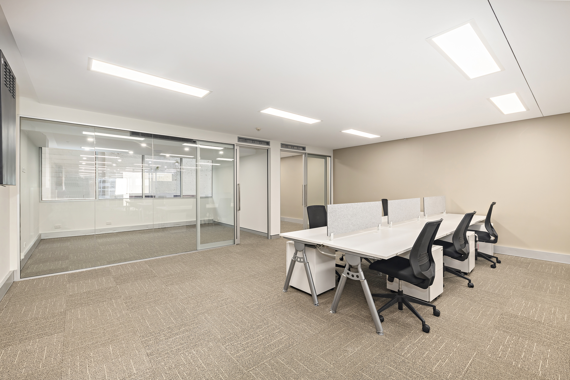 61 York Street is a 4.0 star NABERS rated building completed in early 2008, comprising 16 levels of office space. The lobby was upgraded 2019 and features secure intercom access to each floor. There is an optic fibre connection to the building and independent air conditioning. The ground floor lobby has 2 bathrooms and a shower. - Brand new fitout, 20p boardroom and 2 meeting rooms, 18 desks - Large enclosed open plan balcony with operable doors - Private galley kitchen with dishwasher and fridge - Private on-floor male and female bathrooms