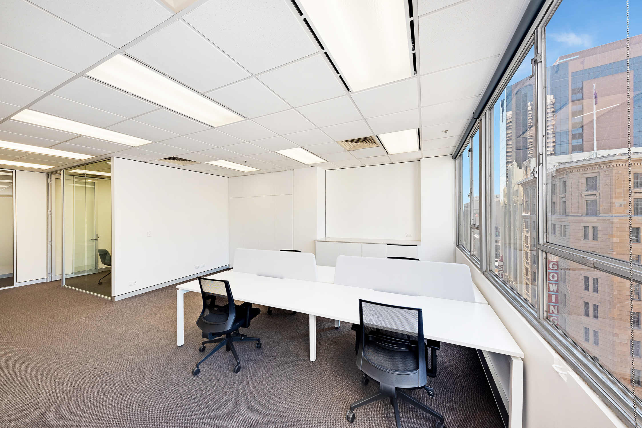 46 Market Street is located on the corners of York, Market and George Streets with the Commonwealth Bank on the ground floor. The building underwent a major refurbishment including, new foyer, new tea rooms, new bathrooms and refurbished floors. There are bike racks and lockers and male and female showers in the basement. - Grandstand view from level 10 with views over QVB and city south - Existing fit out, small reception, meeting room - Open plan with room for 4 - 6 workstations