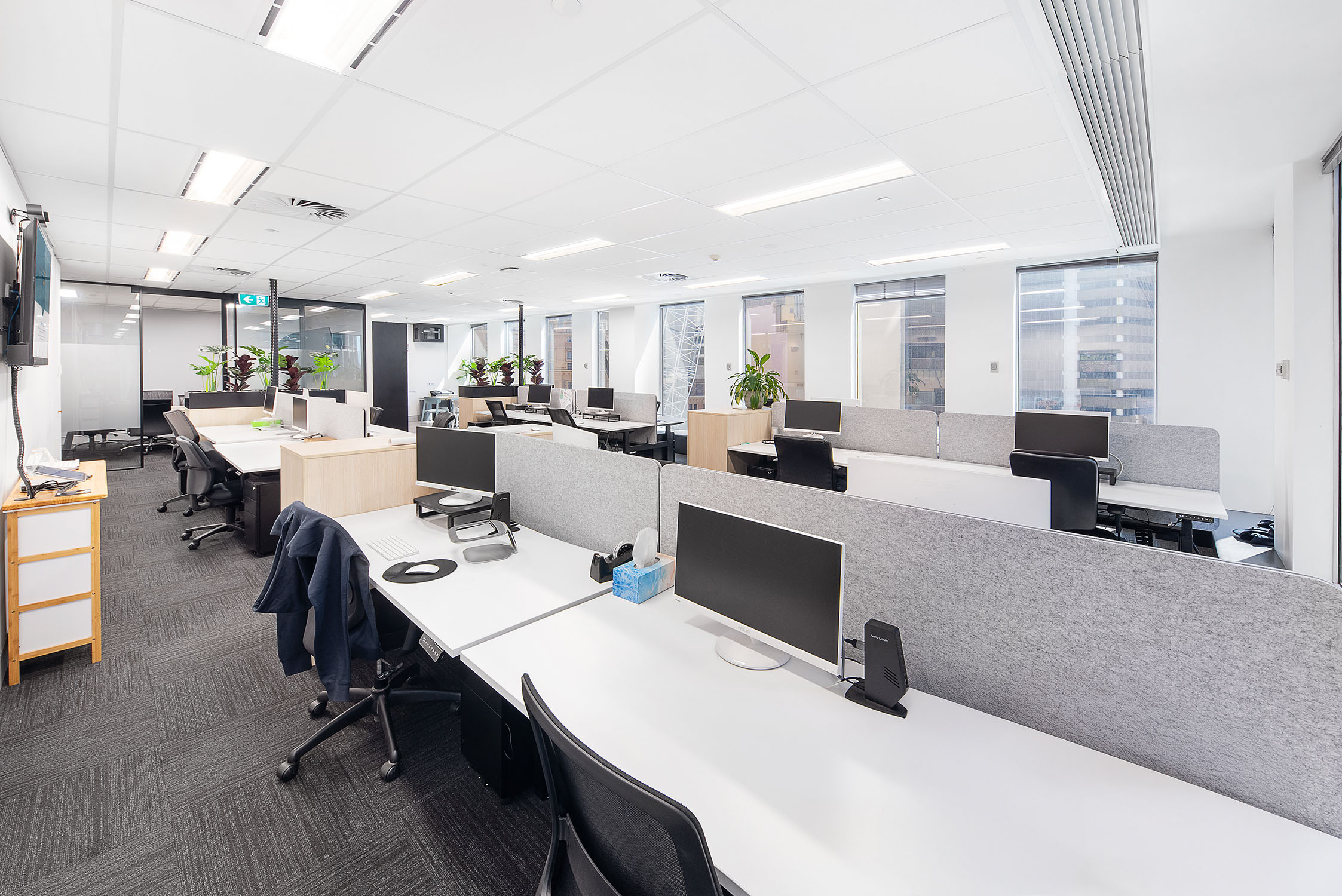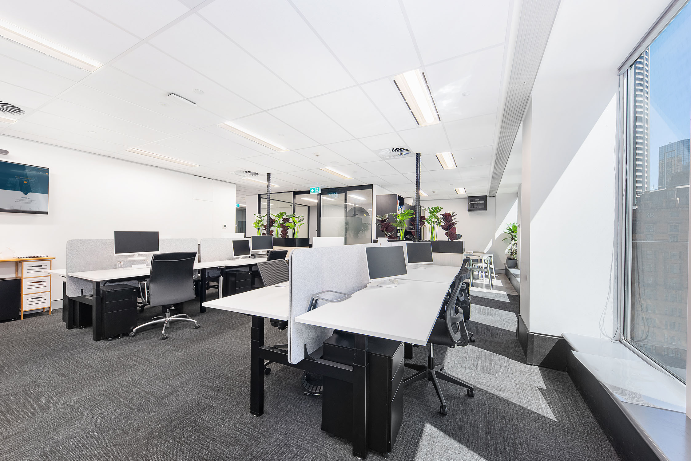 1 Castlereagh Street is a B Grade building located on the corner of Hunter and Castlereagh Streets. The NE aspect gives all floors excellent solar access. The lobby has undergone a recent refurbishment, providing a classy entrance. The basement has parking and end-of-trip facilities with showers, lockers, and bicycle racks. Energy rating.4.5 Stars, Water – 3.5 Stars - Quality existing fit-out in place - Prime North East corner suite with great light - Entry area, boardroom, meeting room, 16 workstations - New direct lease from 1 August 2026