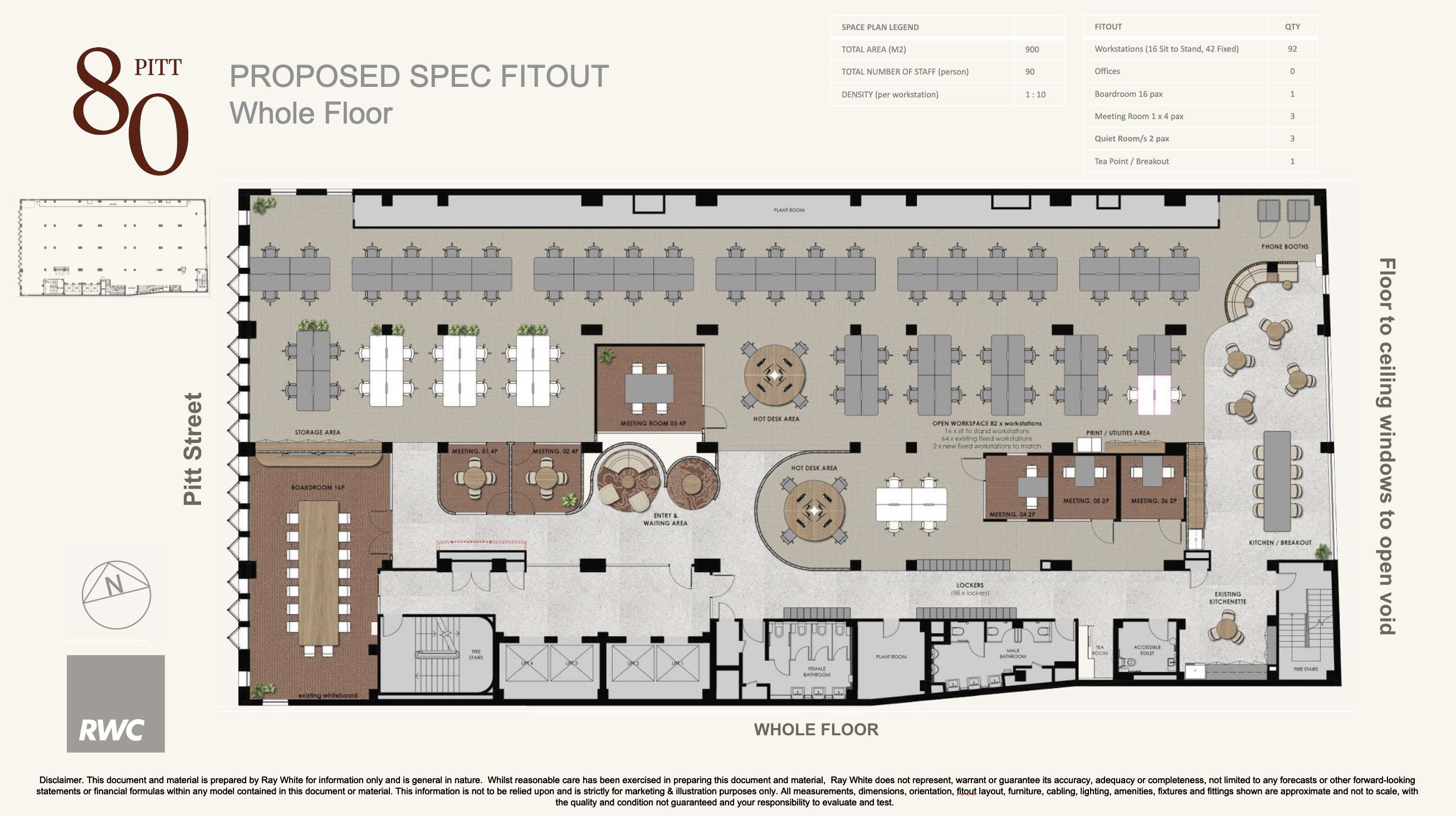 Modern office space meets Pitt St Art Deco heritage. Extensively refurbished building services and bathrooms. New ground lobby experience (2026). Basement EOT. On-floor M/F & DDA bathrooms. Basement EOT/showers. Martin Place proximity. Join multinational tech firm Apple as an 80 Pitt St tenant. - Currently fitted whole floor with approx 84 W/S (ex Macquarie Bank) - Informal meeting areas, kitchen & breakout area, Staff lockers - New bespoke spec fitout can be funded by landlord.